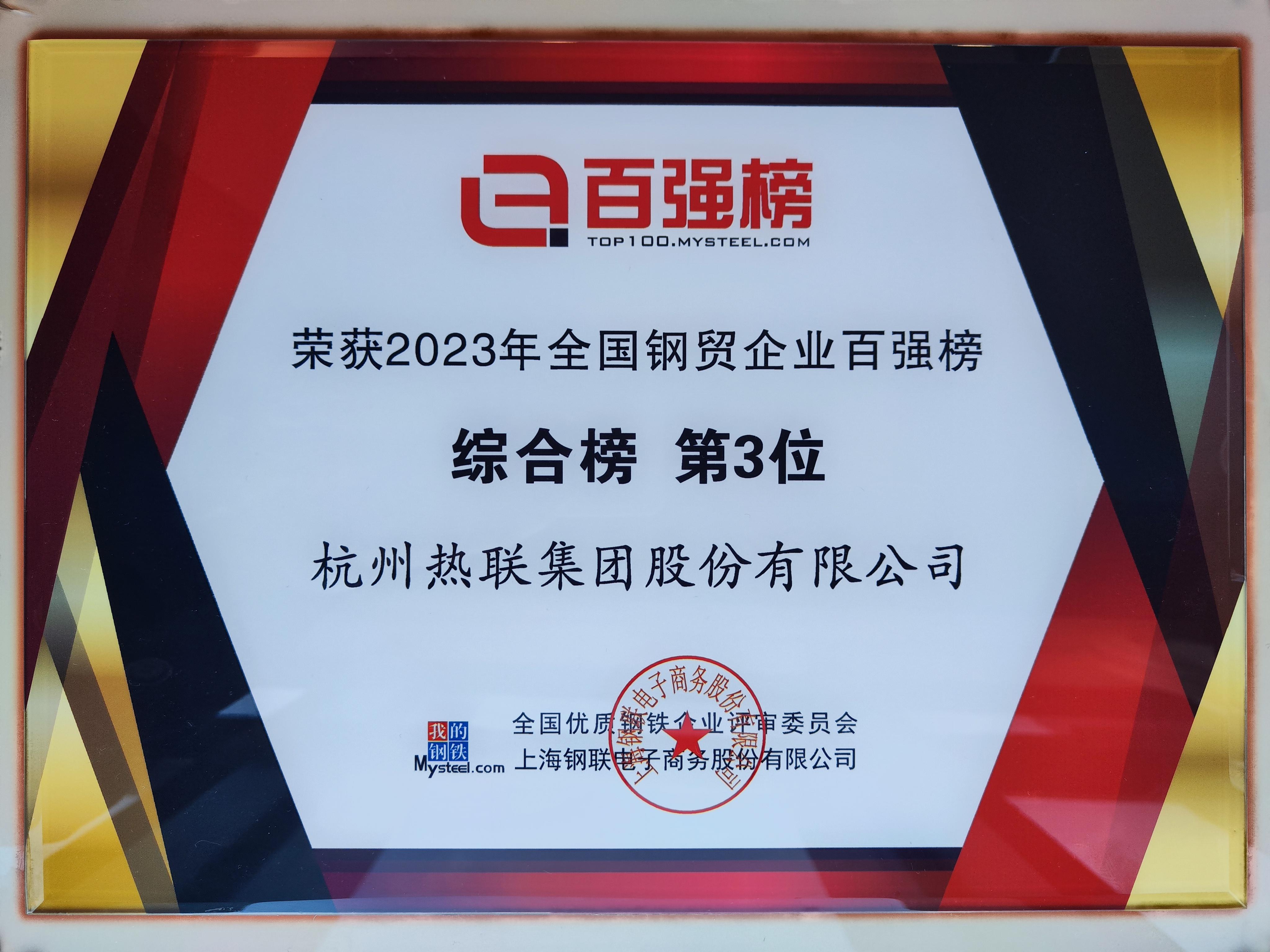 Ranked third in the Top 100 Chinese Steel Trading Enterprises in 2023