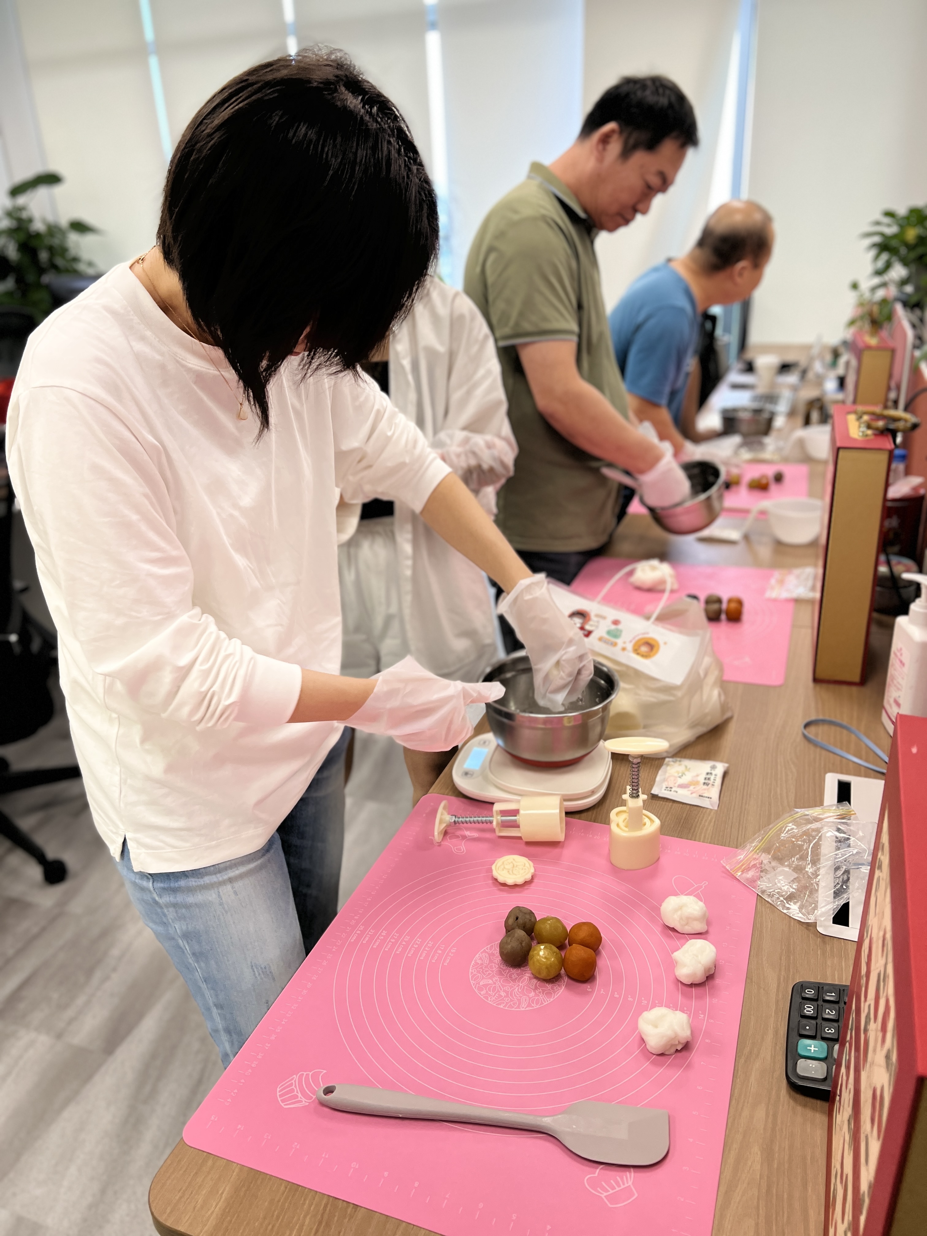同時,在漢嘉國際35樓培訓中心和泛海國際A9樓培訓室還特別設置了DIY中秋糕點活動,共有150多名員工參加了本次活動。在手作師傅的指導下,很多第一次嘗試制作糕點的員工,都順利做出了一個個精美飽滿的糕點。